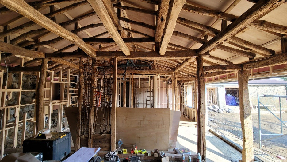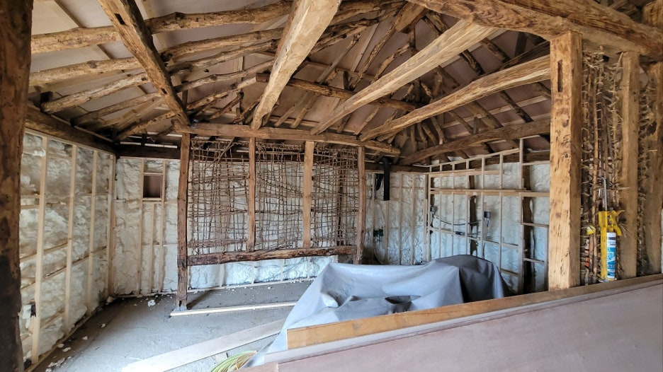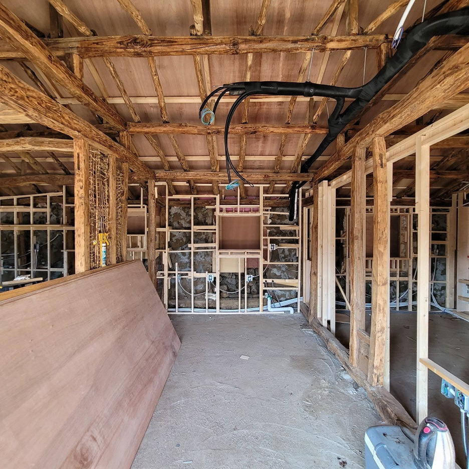 비,바람의 영향을 받지 않는 아늑한 공간이 되어 내부공사를 시작할 수 있게 되었다.