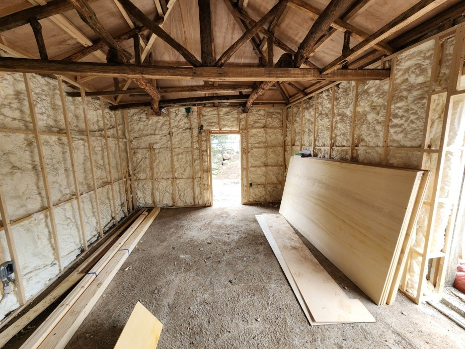구조틀작업할때와 단열작업을 위한 우레탄폼 작업한 모습과 완성된 안거리 침실의 모습을 함께 보여드리겠습니다.