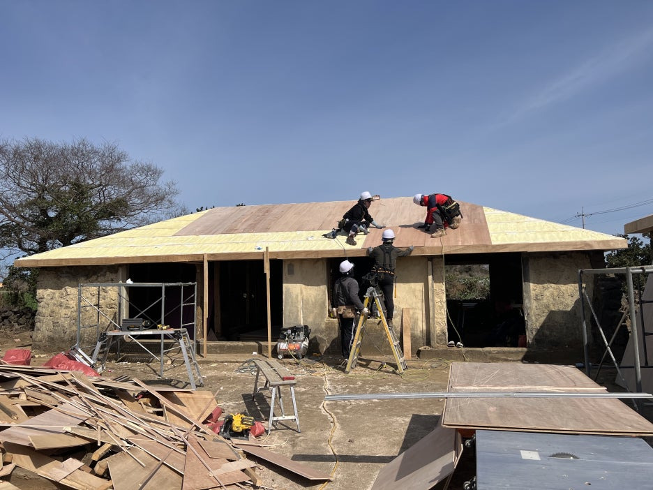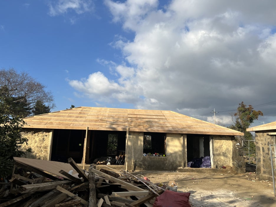 " 제주도의 비,바람 " 때문에 보양하는 작업도 너무 힘들고, 시간이 많이 걸리는 작업이었는데, 다 되어가니 날씨가 맑아지고있다 ^^