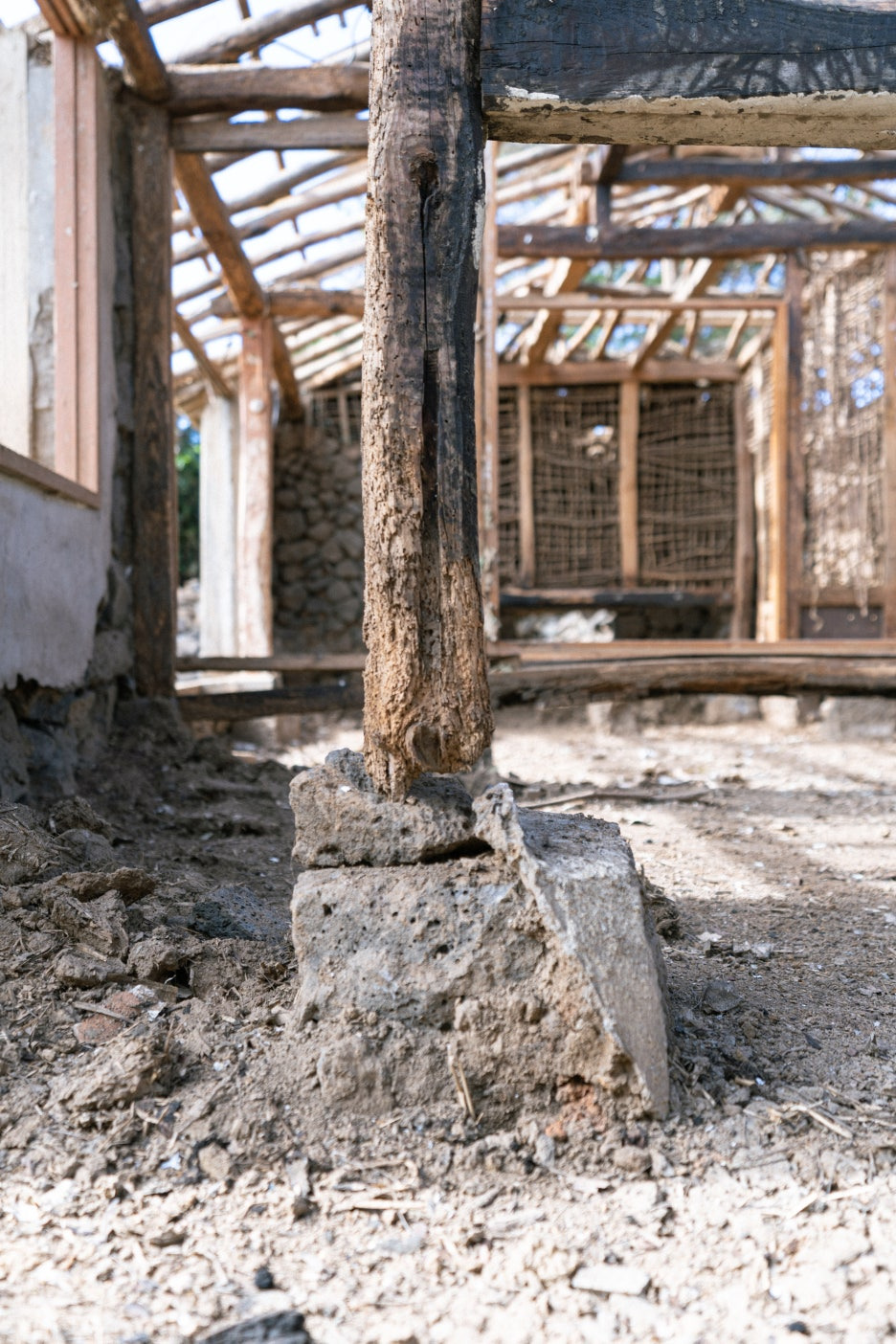 천정구조틀 작업을 위해 구조목을 시공하는 과정에서 기존 구조틀은 너무 오랫동안 방치되었던 빈집이라 사용할 수가 없었고,